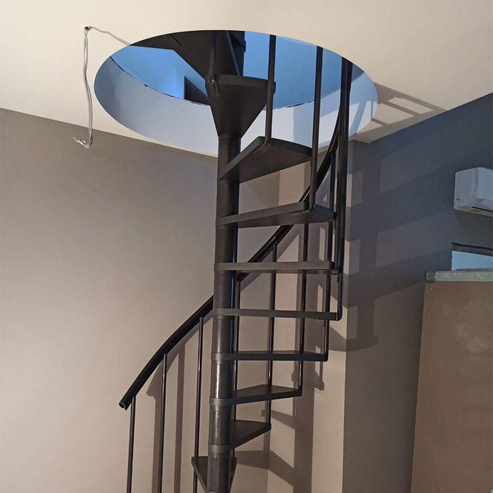 Ступени могут располагаться по часовой или против часовой стрелки относительно центрального столба — направление задаётся при монтаже, а не при заказе. При выборе лестницы достаточно определиться с диаметром: 120 или 140 см. Правильно смонтированная конструкция выдерживает нагрузку до 150 кг.