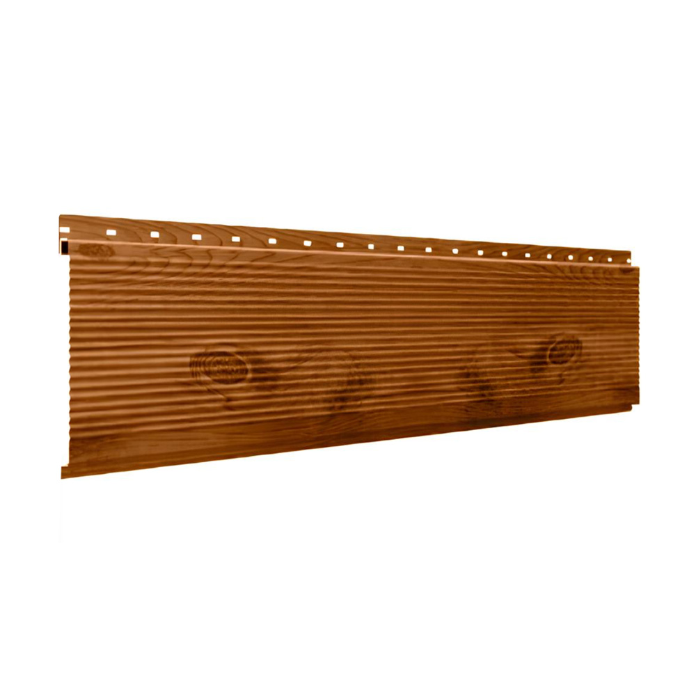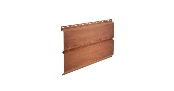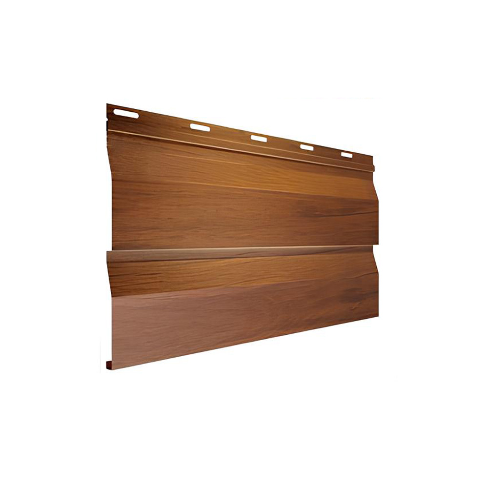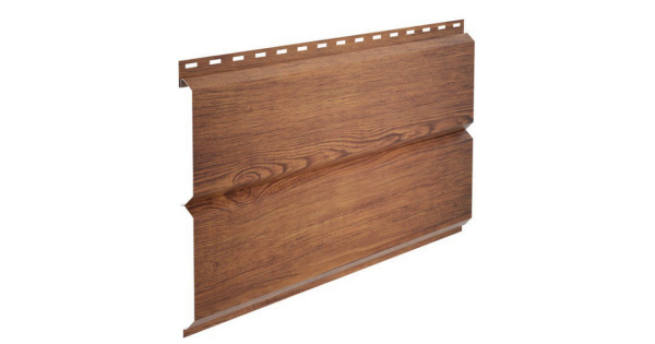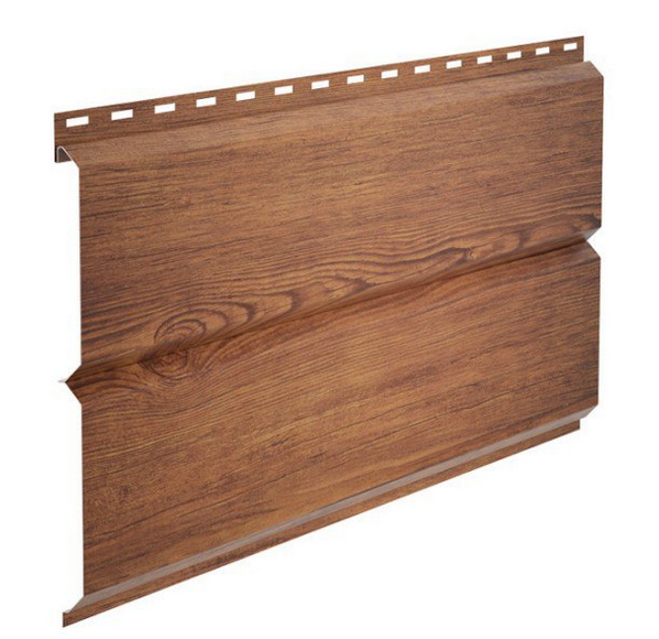Панель металлосайдинга имеет различную фактуру, имитирующую брус, вагонку или доску.