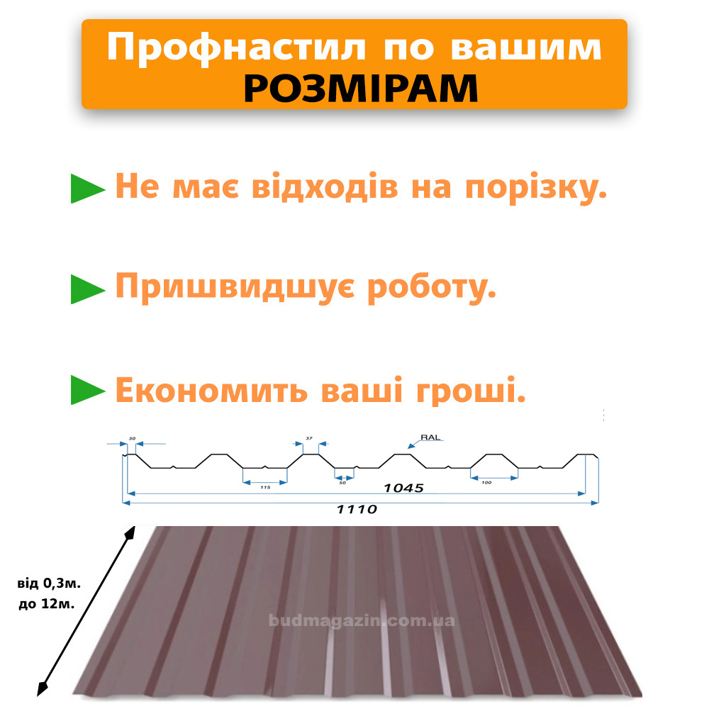 - Вид изделия, кровельный или стеновой (ПС профнастил стеновой, ПК профнастил кровельный) на цену не влияет.