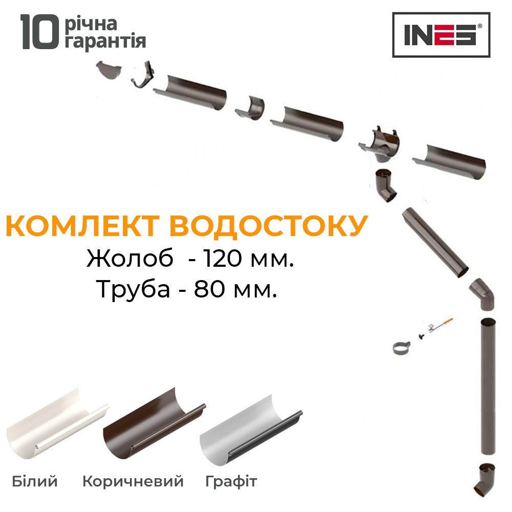 - Водосточные системы, выполненные из пластика, металла, меди. На сайте можно купить продукцию от известных брендов. (Bryza, Ines, Rainway и других торговых марок). Оригинальные желоба, муфты, воронки, углы, кронштейны, заглушки поставляются с официальной гарантией качества.