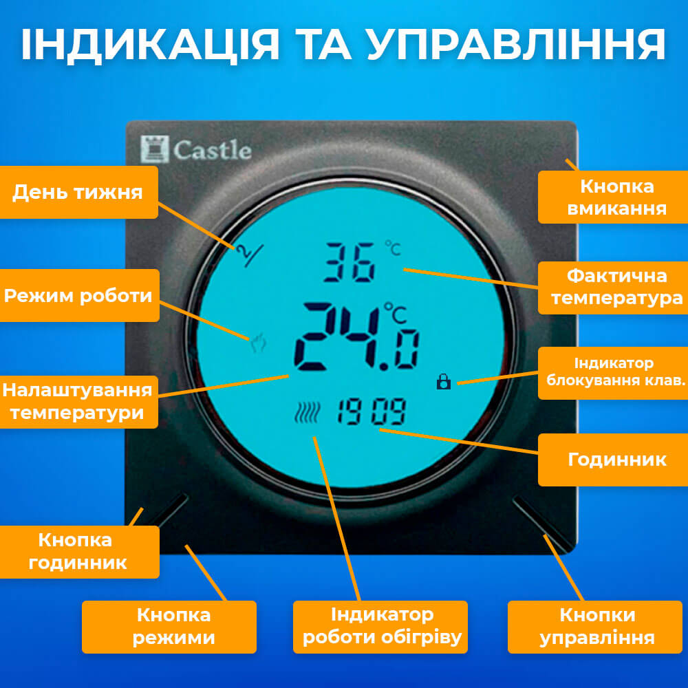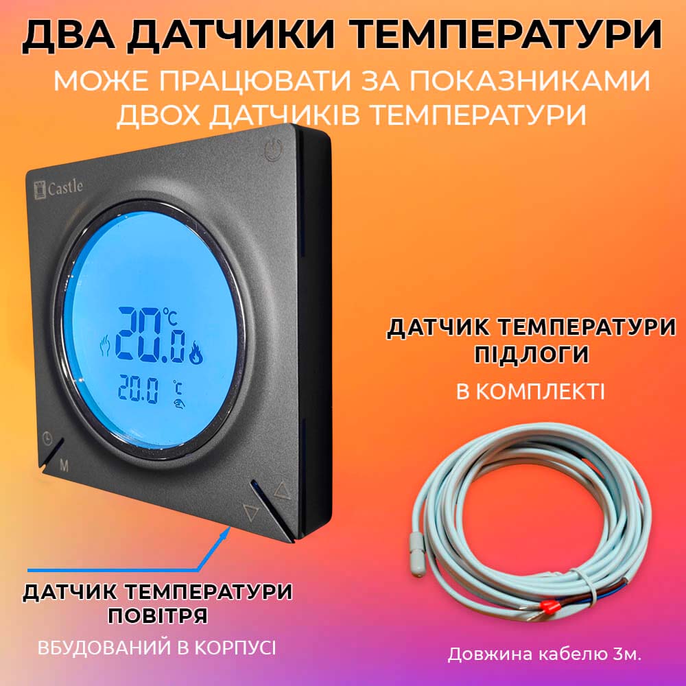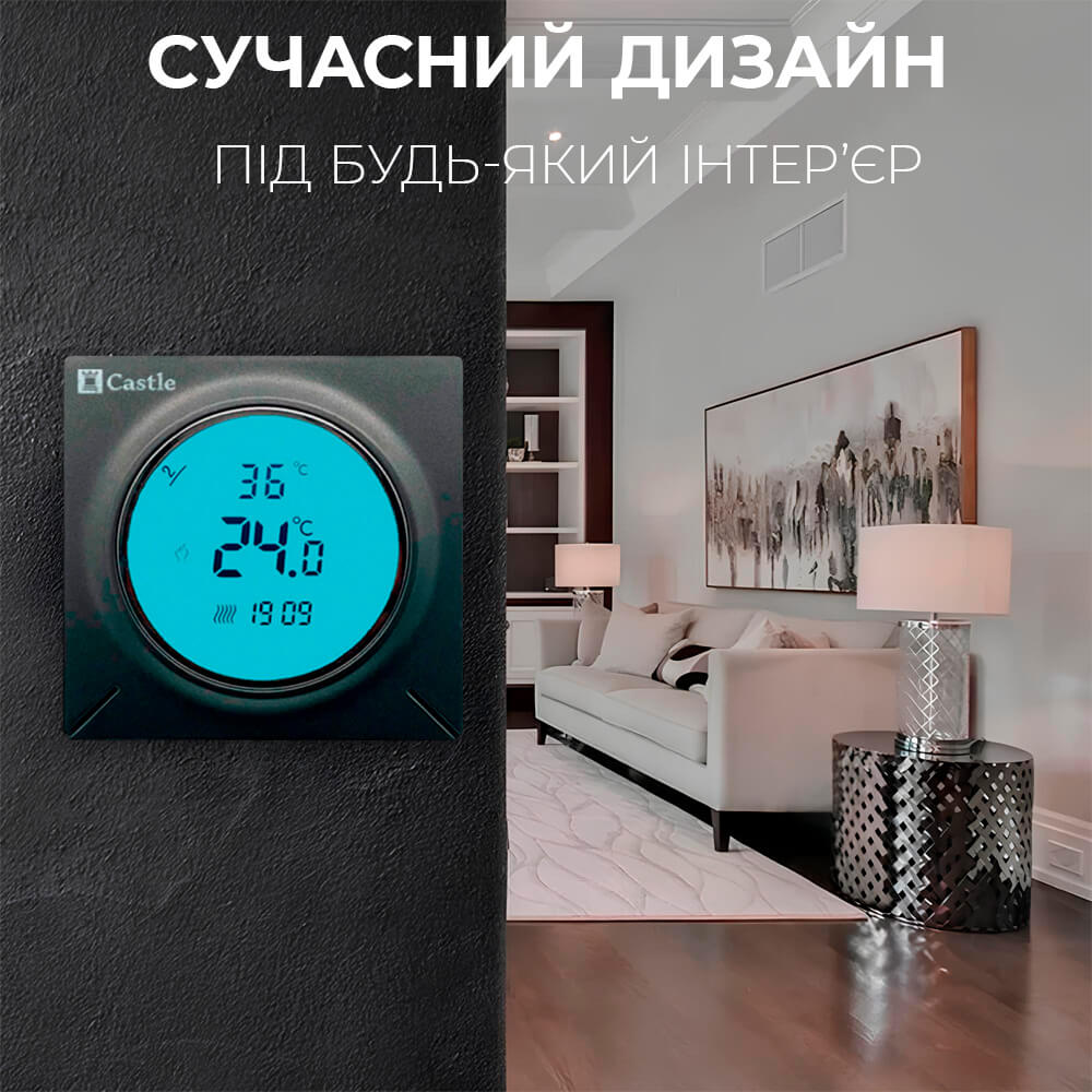 Терморегулятор программируемый для теплого пола Castle AC829H (Графит)