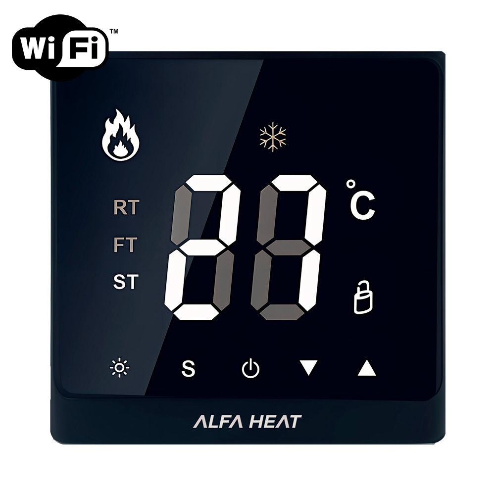 Терморегулятор для теплого пола Alfa Heat Smart с управлением по WI-FI Черный - 1472.00