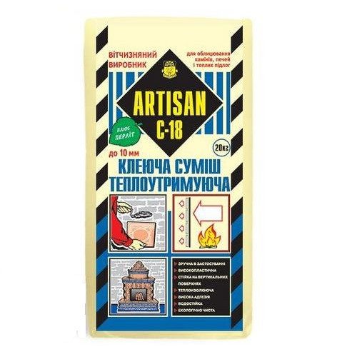 Клеюча суміш Artisan С-18 теплоутримуюча призначена для обробки теплої підлоги, камінів та печей. Також суміш можна використовувати для влаштування керамічної плитки, каміння та подібних матеріалів.