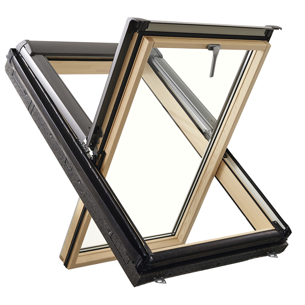 - Вісь обертання розташована на 1/2 висоти вікна, що забезпечує оптимальне провітрювання та освітлення мансарди.