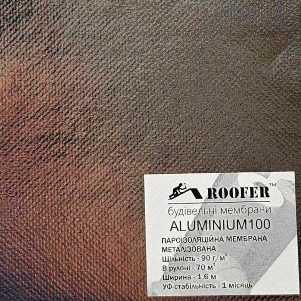 Мембрана Руфер AL100 складається з армованого, фольгованого та пароізолюючого шарів, з додаванням ультра фіолетового стабілізатора (UV). Світлостабілізатор забезпечує додатковий захист від прямих сонячних променів, це суттєво продовжує термін експлуатації скатної покрівлі.