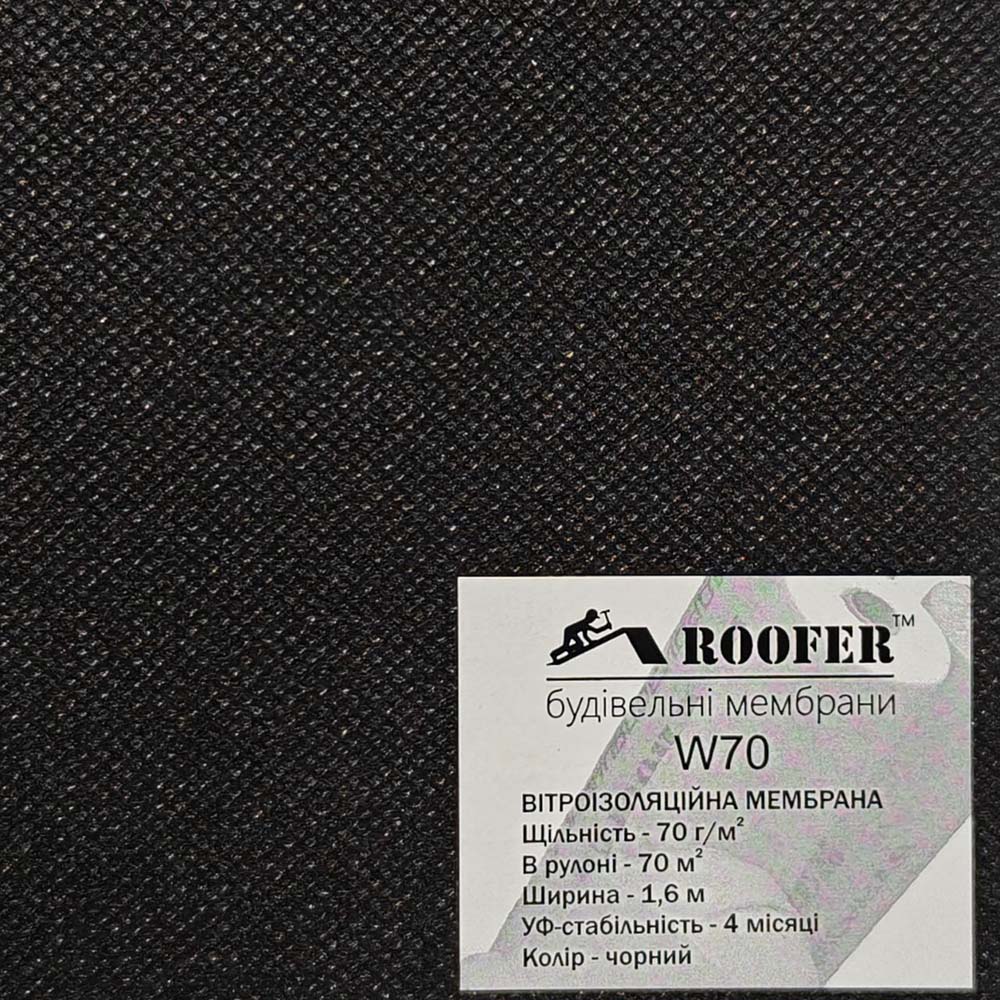 Вітроізоляція Roofer W70 це чорна паропроникна, двошарова мембрана. Застосовується для всіх видів вентильованих фасадних систем. Вітроізоляційна мембрана Руфер W70 має захист від UV стабілізатора. Міцність на розрив мембрани Н/5: 160/110 см.