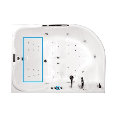 - підходить для великих об'ємних ванн з можливістю встановлення спинних форсунок із двох сторін