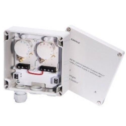Терморегулятор Eberle DTRE 3102 підходить для систем сніготанення та антизледеніння. Термостат керує обігрівом скарг, водостоків, покрівлі, сходів, тротуарів. Двома регуляторами задається верхнє та нижнє значення діапазону температури при якому відбувається включення та вимикання обігріву. Можлива зовнішня установка.