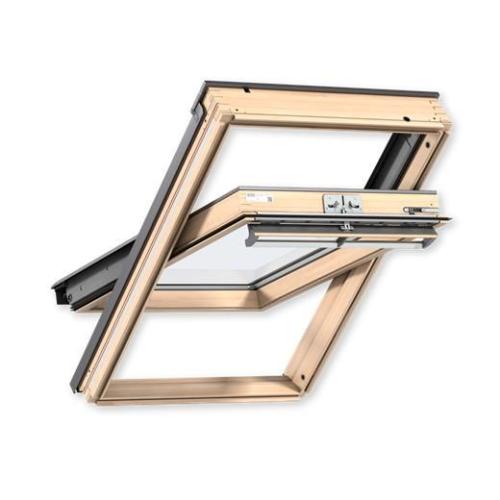Мансардне вікно з центральною віссю відкриття серії Преміум VELUX GGL 2066 виготовлене із соснового дерева. Вікно відкривається на 180 градусів навколо центральної осі, що дозволяє легко та швидко помити покрівельне вікно. Можна встановлювати у будь-яких приміщеннях при куті 15-90 градусів. Можливість встановлення дистанційного керування. Стандартна комплектація мансардне вікно VELUX GGL 2066 включає: