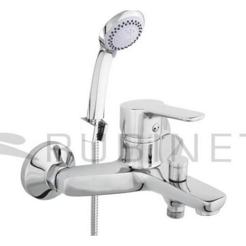 Змішувач для ванни Rubineta UNO-10/К у комплекті з душовим шлангом 150 см, душовою лійкою та тримачем для душу.