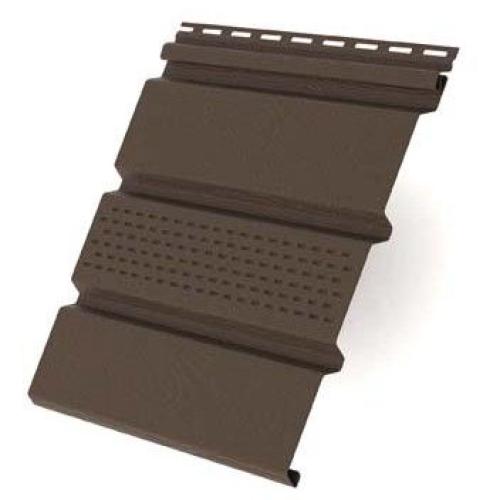 Профили подшивки Софит Royal с перфорацией (коричневый) может использоваться для наружной установки. Цель улучшить внешний вид зданий, придать им целостность отделки и обеспечить вентиляцией. Особенности конструкции профилей позволяют их длительную эксплуатацию при монтаже в любых плоскостях, в том числе и горизонтальной. Профили бывают в двух исполнениях: белом и коричневом.