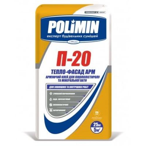 Клеевая смесь для пенополистирола и минеральной ваты Полимин П-20 (25 кг) предназначена для приклеивания утеплителя (пенопласта и минеральной ваты) при внешней отделке построек, а также для создания гидрозащитного слоя.